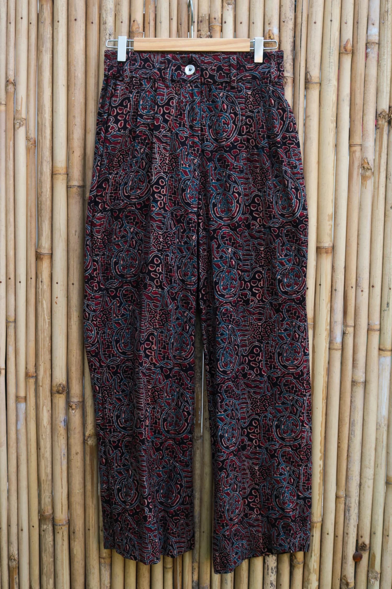 Get ready to turn heads in these flare pants, made from soft kala cotton denim and printed with the stunning Ajrakh technique. The intricate hand-block print adds a touch of tradition to this bold, modern style. Perfect for those who love a mix of comfort and artistic flair!
