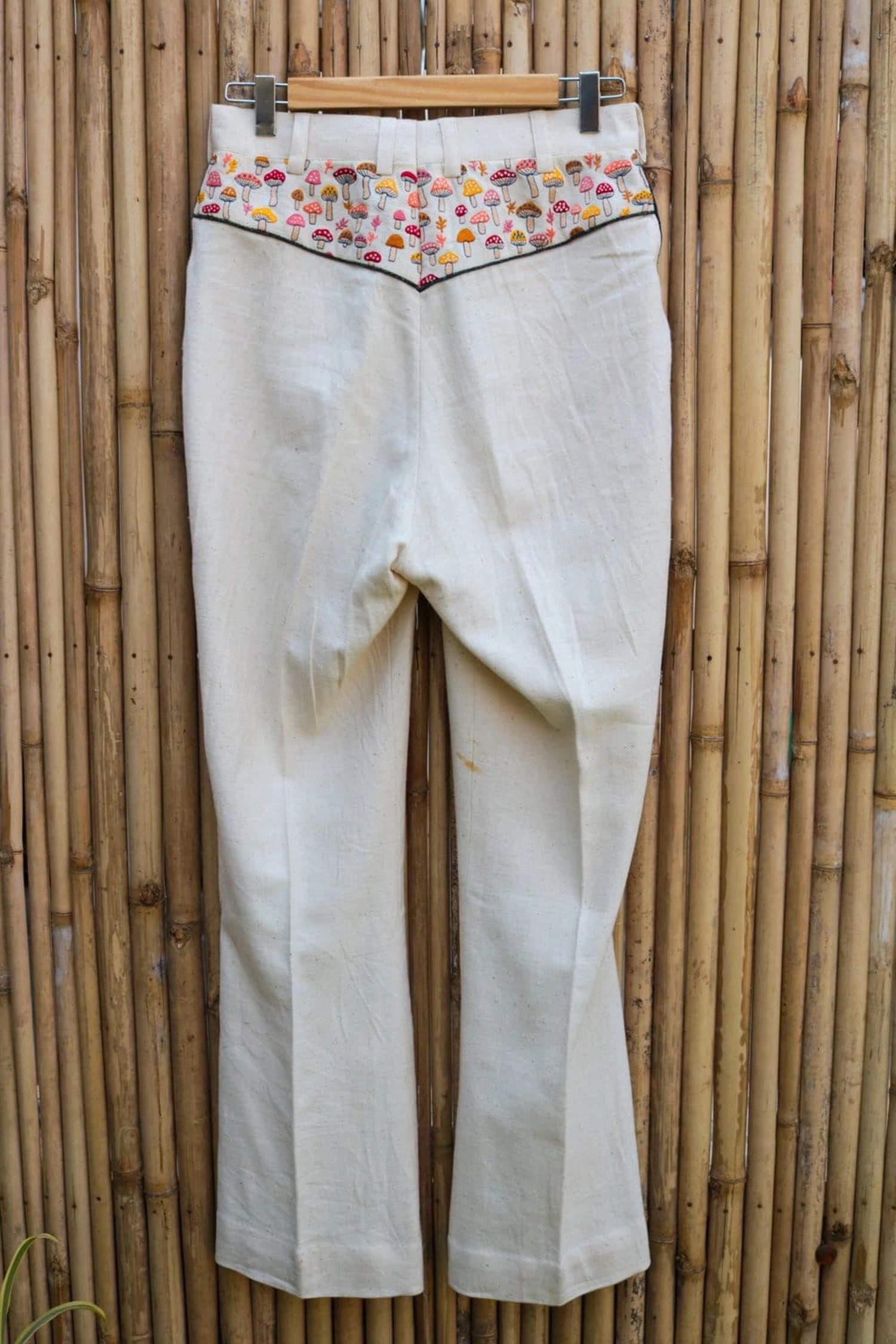 Step into cozy whimsy with these wide pants crafted from soft, breathable kala cotton denim. Featuring a playful touch of embroidered baby mushrooms on the pant yoke, they offer effortless style with a dash of charm. Perfect for adding a little fun to your everyday look!