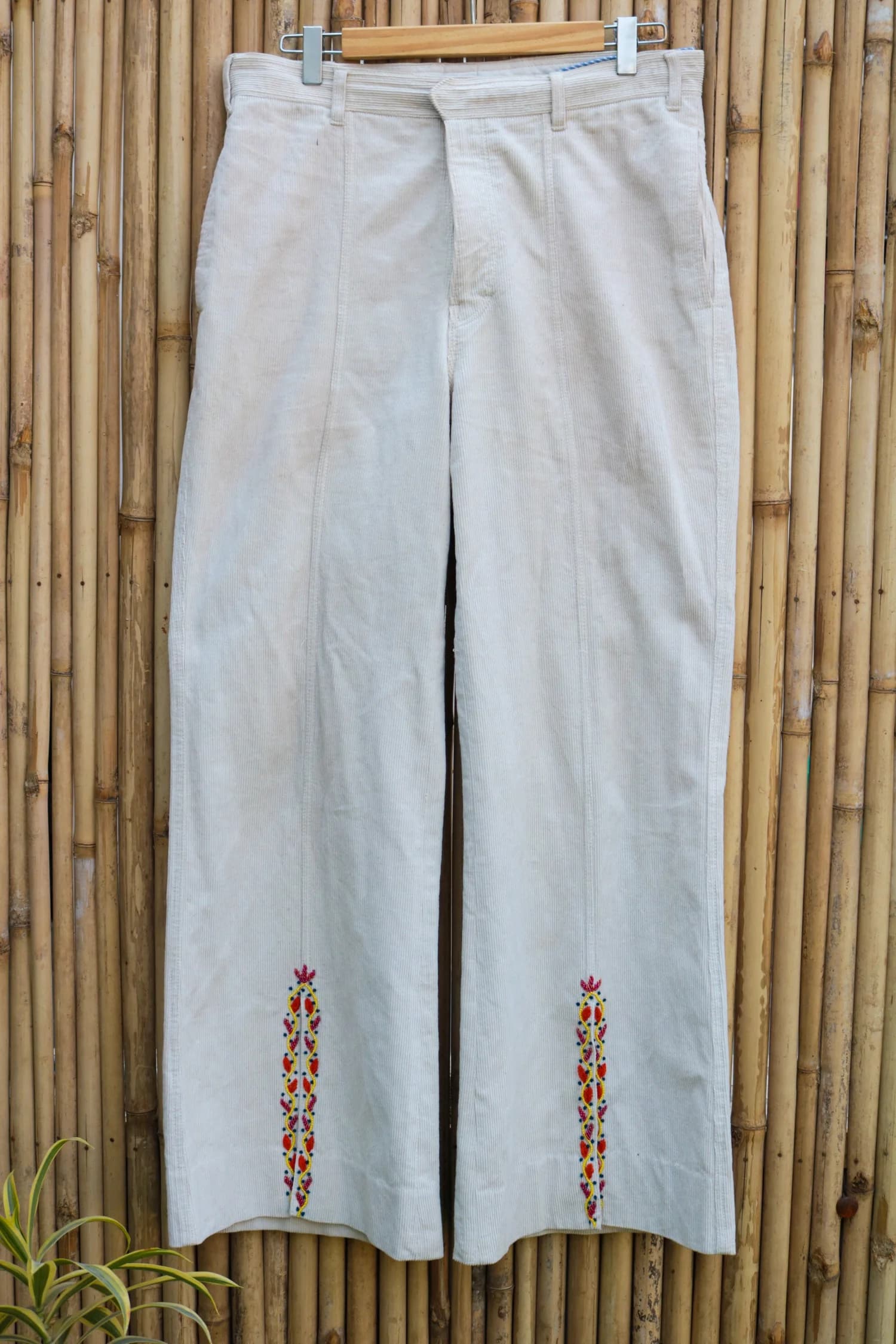 Step up your style game with these organic cotton corduroy pants, featuring playful embroidered front slits adorned with beads. Combining comfort, charm, and a touch of sparkle, they’re the perfect way to add a little fun to your everyday look!