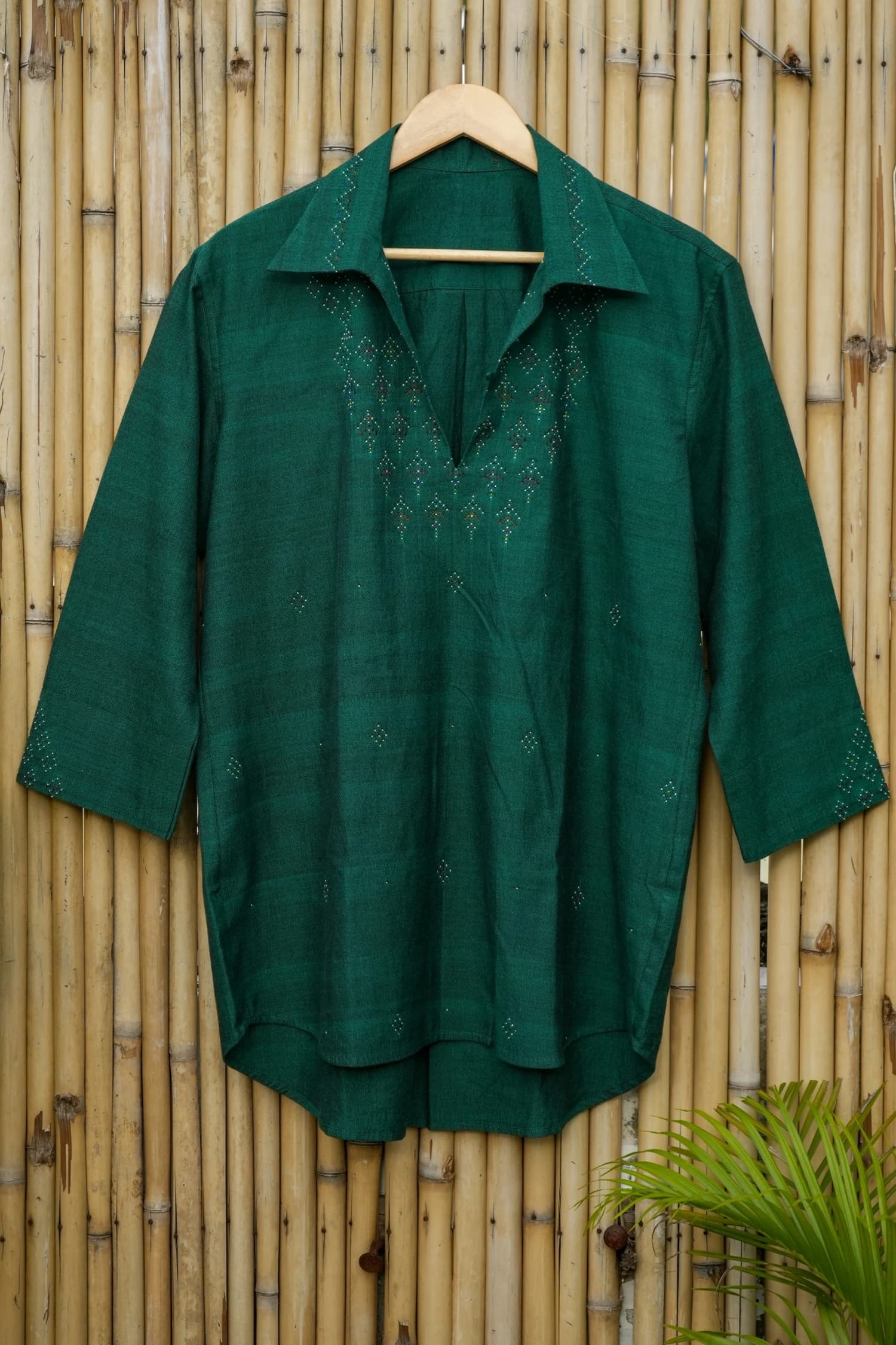 Wear it loose over tailored trousers for gallery evenings, or half-tucked with denim for slow weekends and sun-drenched gatherings, it moves effortlessly between understated and unforgettable.