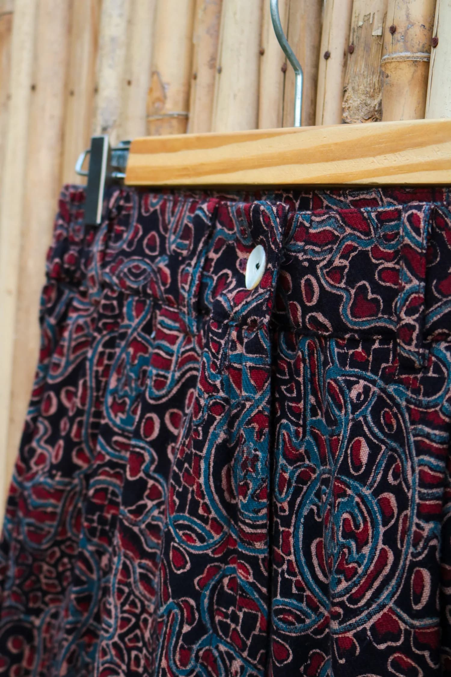 Get ready to turn heads in these flare pants, made from soft kala cotton denim and printed with the stunning Ajrakh technique. The intricate hand-block print adds a touch of tradition to this bold, modern style. Perfect for those who love a mix of comfort and artistic flair!