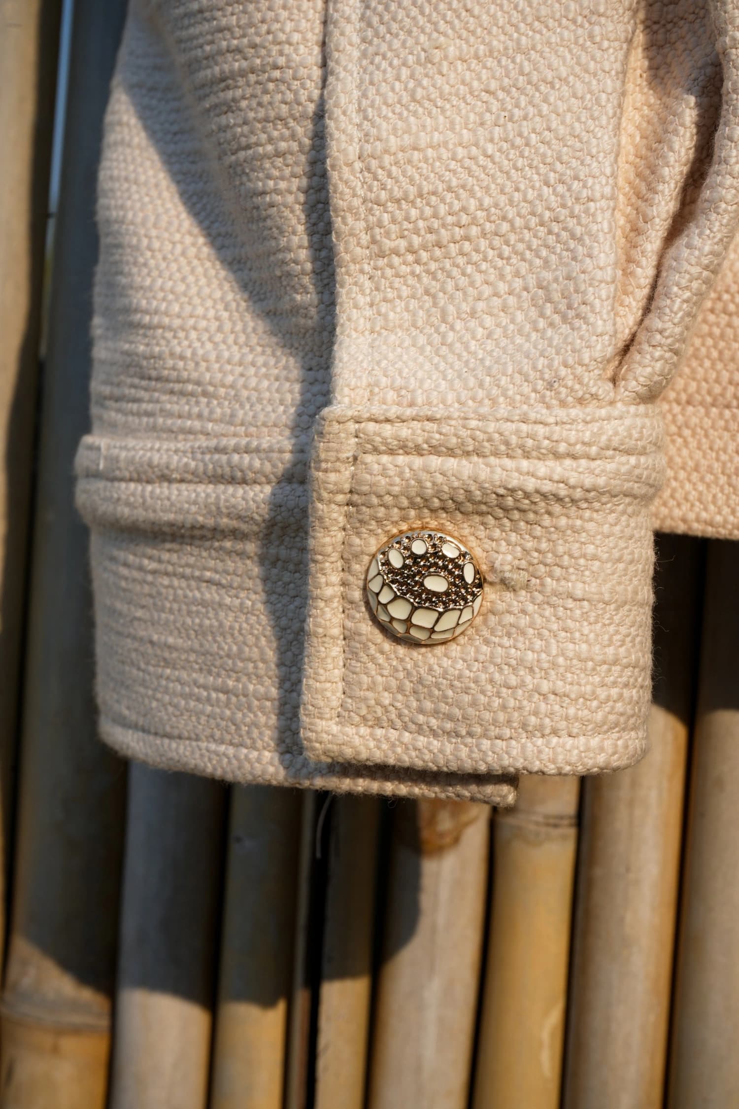 A refined cotton canvas jacket featuring intricate cutdana embroidery that adds subtle shimmer and structure. Designed with a clean silhouette and rich detailing, it balances artisanal craftsmanship with a timeless, statement-ready feel.