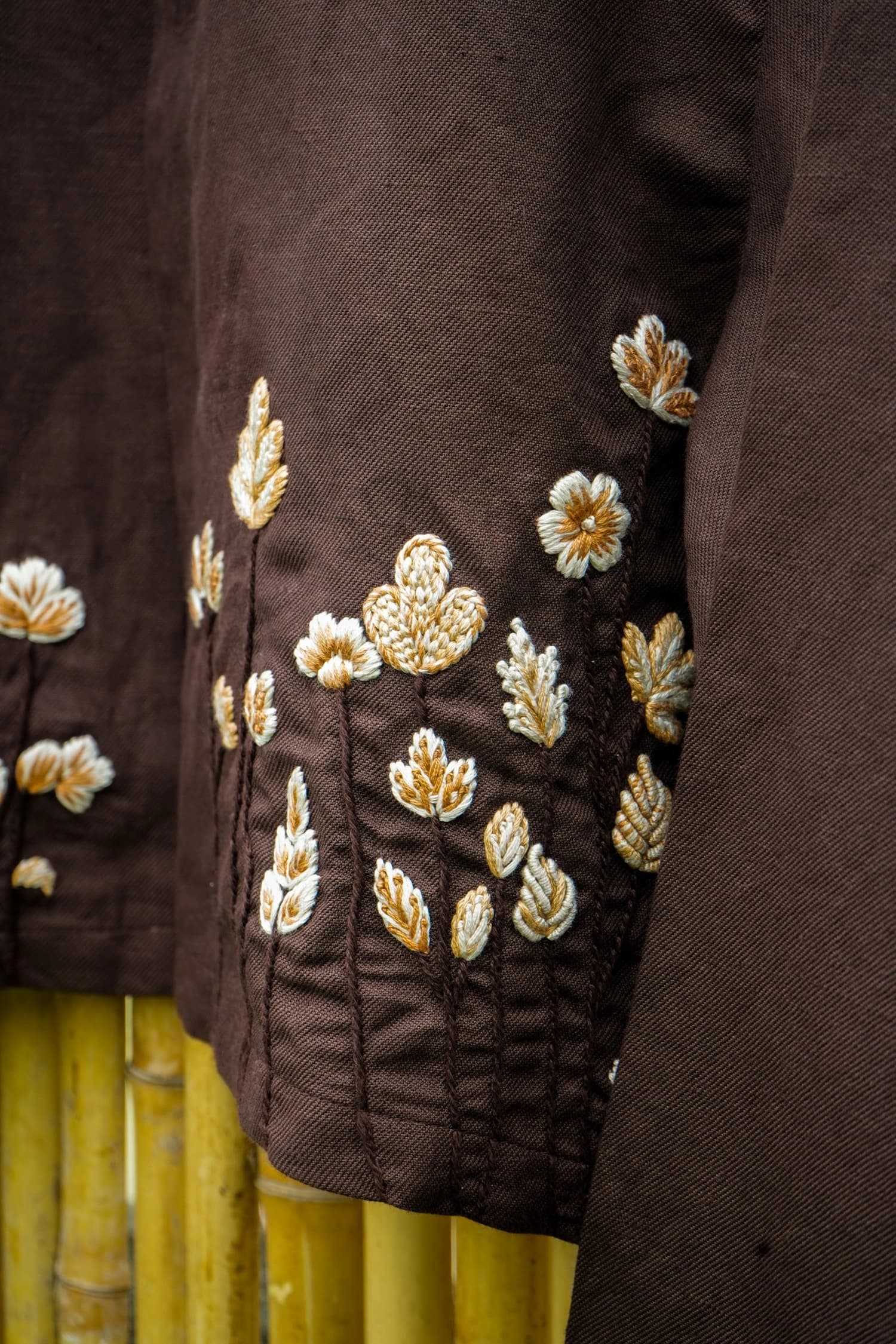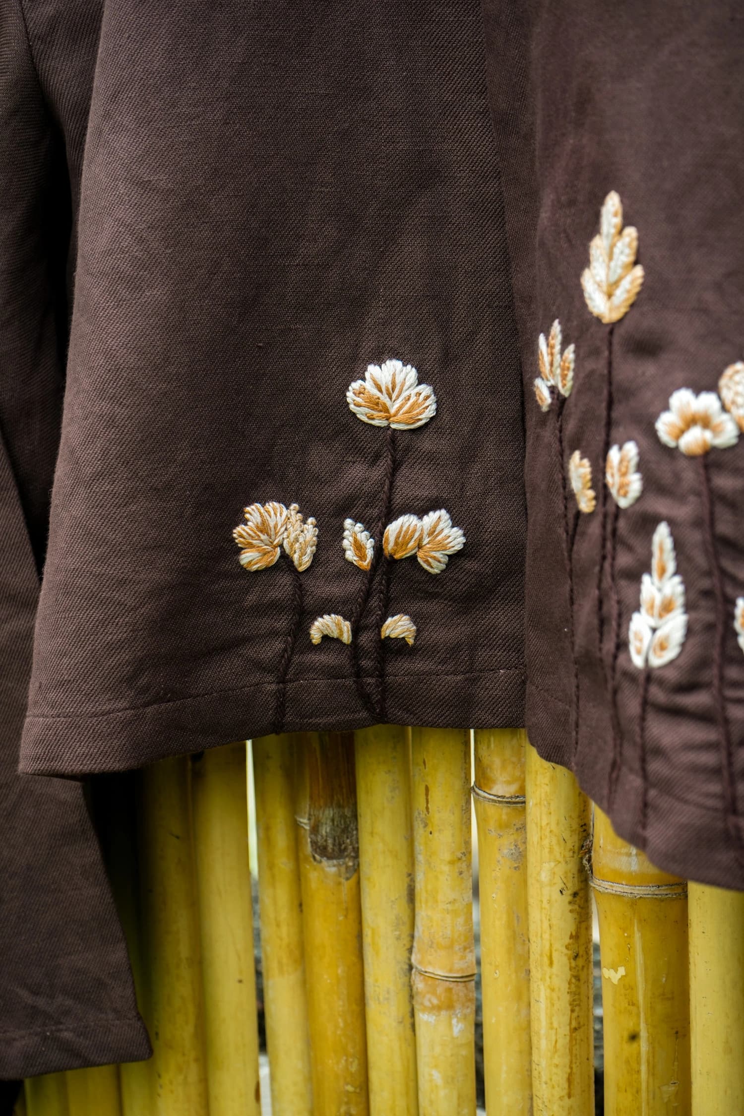 A handcrafted shacket made from breathable hemp fabric, finished with delicate hand embroidery for a timeless, artisanal feel. Designed to blend structure and softness, it’s a piece that celebrates slow craftsmanship and natural textures.
