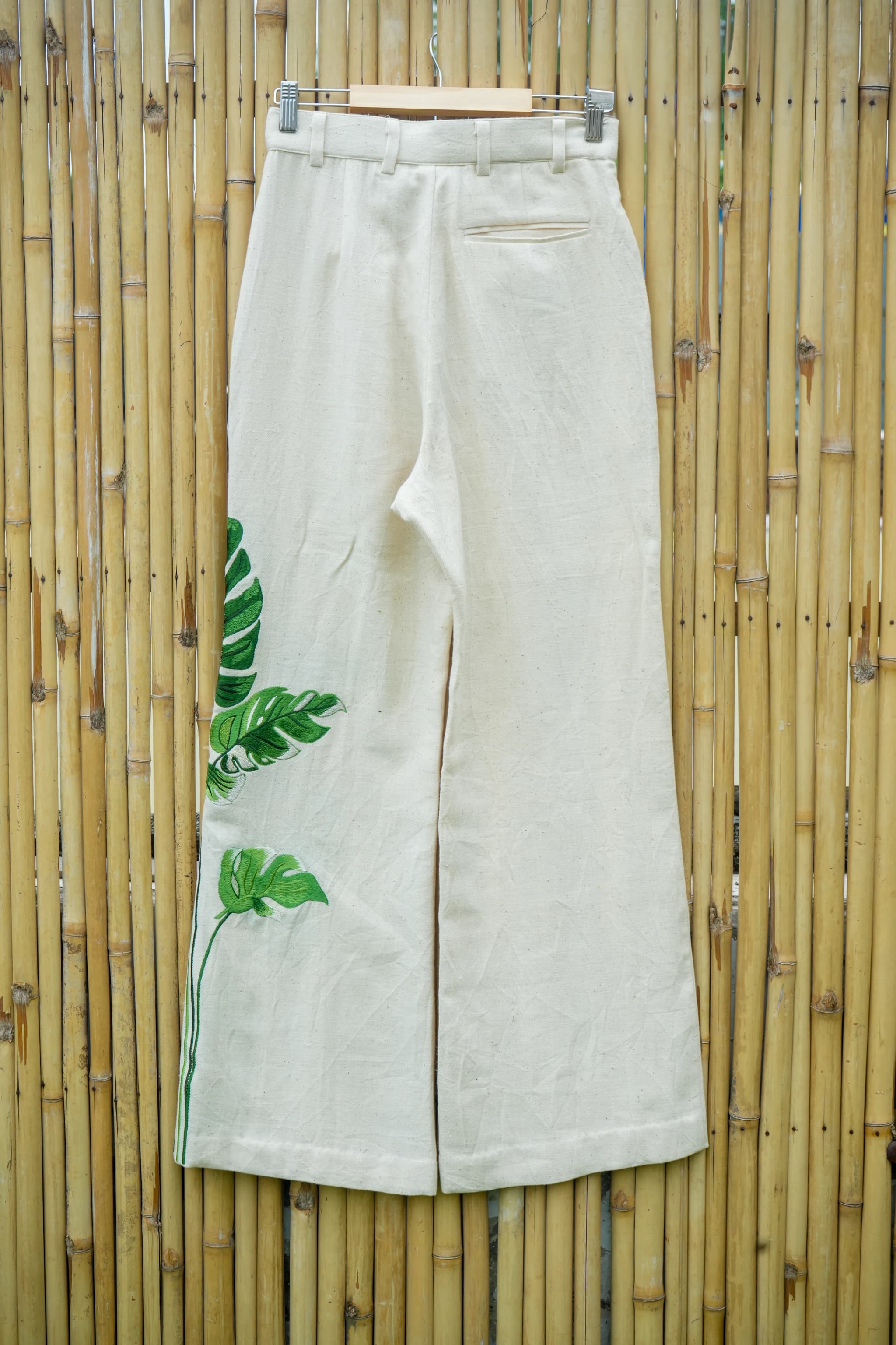 Rooted in calm and crafted from Kala cotton denim, these wide-leg pants bring nature to your wardrobe with hand-drawn monstera leaves climbing up the side. A quiet nod to slow living, stitched in earthy soul.